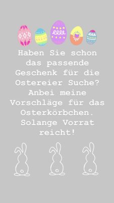 Meine Verkaufsangebote für Ostern finden Sie unter der Rubrik: Verkaufsprodukte
